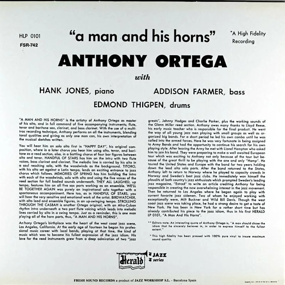 Anthony Ortega (ts, bs, cl, fl), Hank Jones (p), Addison Farmer (b), Ed Thigpen (d)