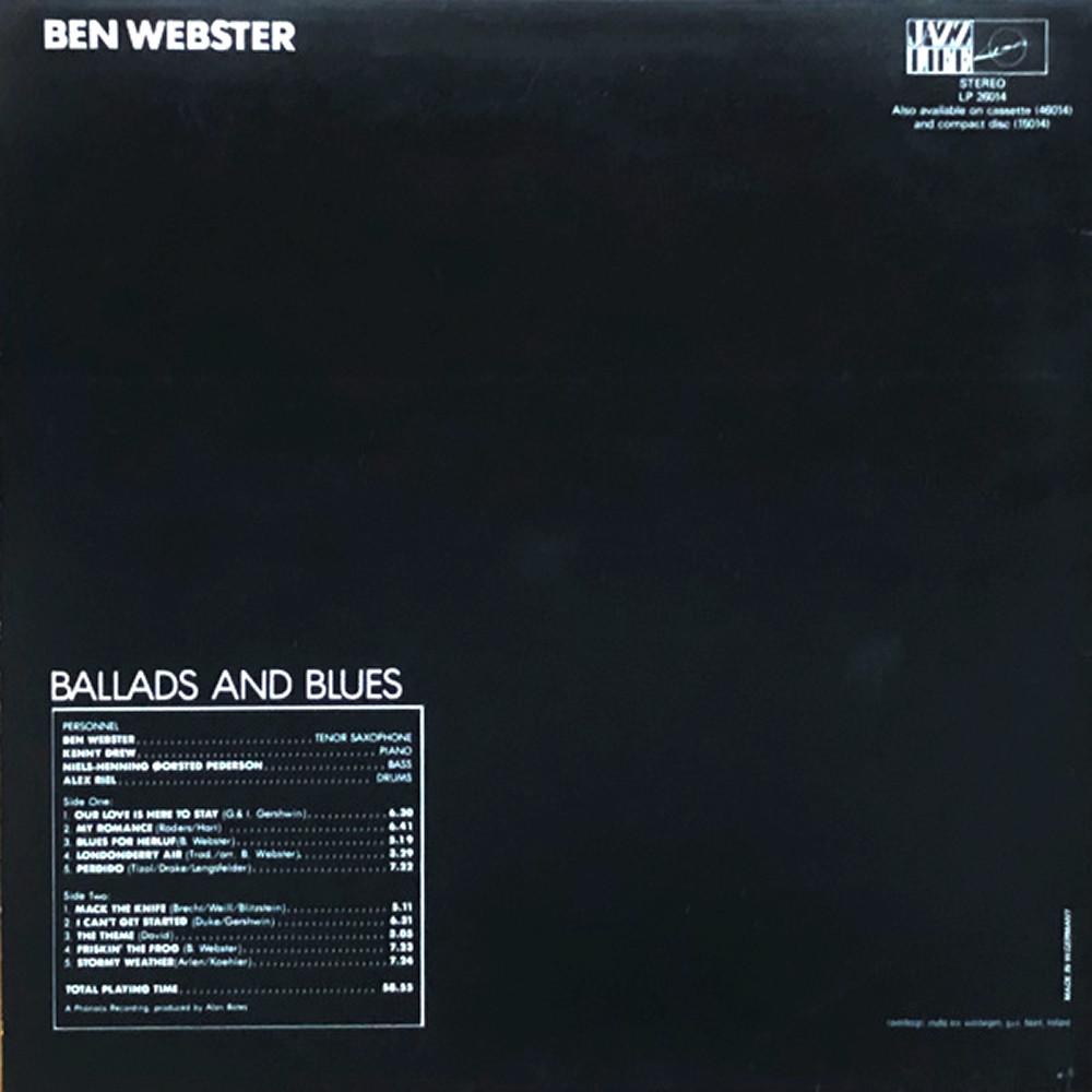 Ben Webster (ts), Kenny Drew (p), Niels-Henning Ørsted Pedersen (b), Alex Riel (d)