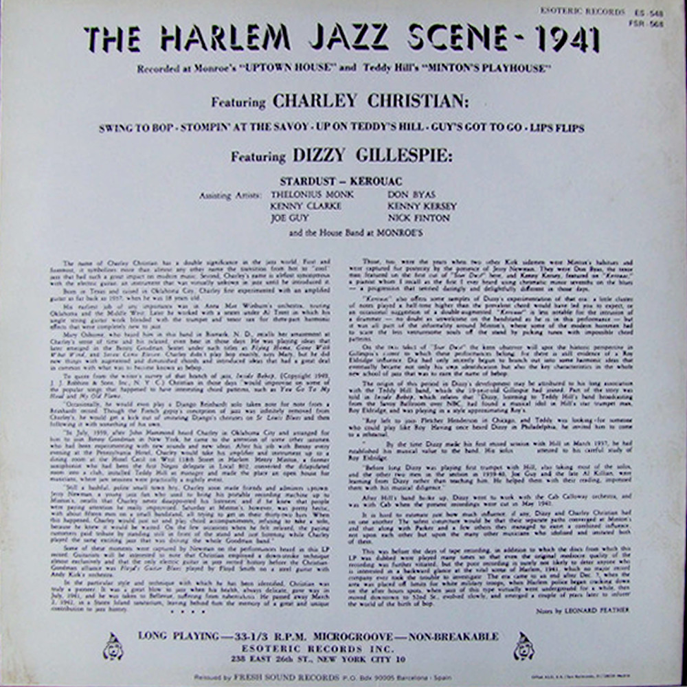 Charlie Christian (g), Dizzy Gillespie, Joe Guy (tp), Don Byas (ts), Thelonious Monk, Kenny Kersey (p), Nick Finton (b), Kenny Clarke (d)