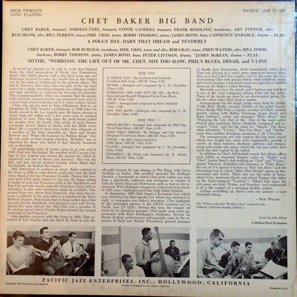 Chet Baker, Norman Faye, Conte Candoli (tp), Frank Rosolino, Bob Burguess (tb), Art Pepper, Bud Shank, Fred Waters (as), Bill Perkins, Bob Graf (ts), Phil Urso (ts, arr), Bill Hood (bs), Bobby Timmons (p), Jimmy Bond (b), Lawrence Marable, Peter Littman, James McKean (d)