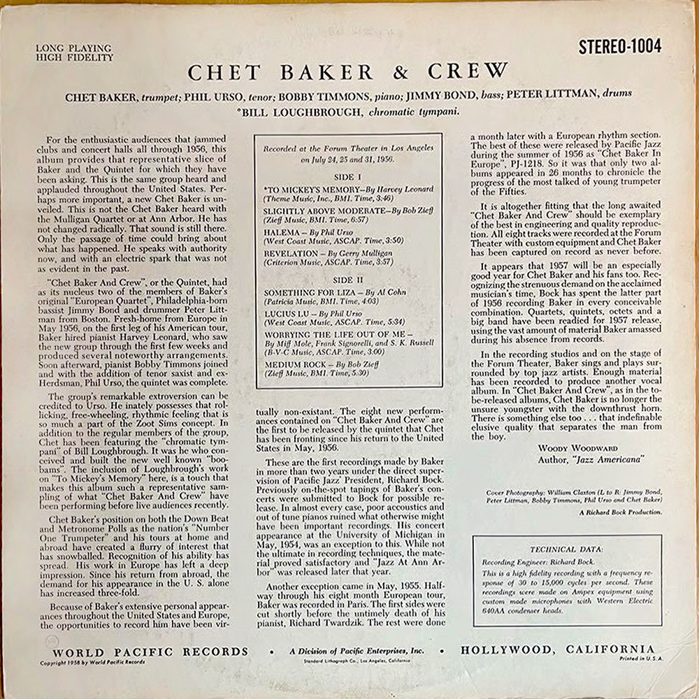 Chet Baker (tp), Phil Urso (ts), Bobby Timmons (p), Jimmy Bond (b), Peter Littman (d)