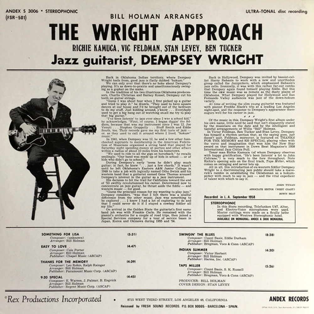 Dempsey Wright (g), Richie Kamuca (ts), Victor Feldman (p, vib), Ben Tucker (b), Stan Levey (d), Bill Holman (arr)