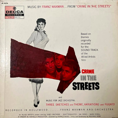 The first reference spotlights B movies Crime in the Streets and Dino. Crimes band has an orchestra conducted by Franz Waxman with jazz soloists Pete Condoli/tp, Georgie Auld/ts, Ted Nash/ts, Barney Kessel/g, Andre Previn/g and Joe Mondragon/b. The cooking opening theme The Plot is a hot plate served well for Kessel and alto saxist Dumont, with The Crime not far behind. Other pieces get quite noirish and mysterious, with solos taking you down dark street corners, particularly on Theme, Variations and Fugato. The film Dino starred Sal Mineo (what teen movie WASNT he in?!?) and the orchestra lead by Gerald Fried includes the hot trumpet of Maynard Ferguson and the rich trombone of Frank Rosolino. This obscure film has some bluesy and bopping themes such as Little Jazz and Death in a Warehouse while Defiance begs for some LA band to take it up. Photos of actors Mineo and John Cassavetes (told you that youd like it) put it all in perspective. Where has this stuff been hiding? Fun, fresh and tight as a leather motorcycle jacket!"
