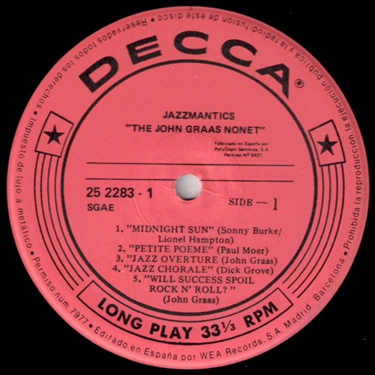John Graas (Frh), Conte Candoli, Jack Sheldon (tp), Art Pepper, Herb Geller (as), Bob Cooper, Jack Montrose (ts), Buddy Collette (bs), Paul Moer (p), Red Callender (tuba), Red Mitchell, Buddy Clark (b), Shelly Manne (d)
